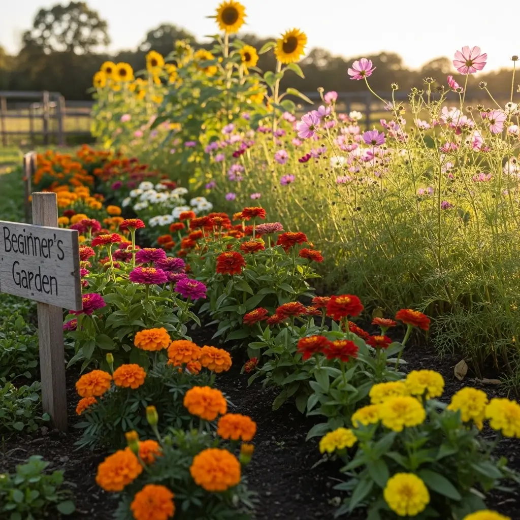 Flowers like marigolds, zinnias, cosmos, and sunflowers are great for beginners. They grow fast, bloom for a long time, and don’t need a lot of special care.