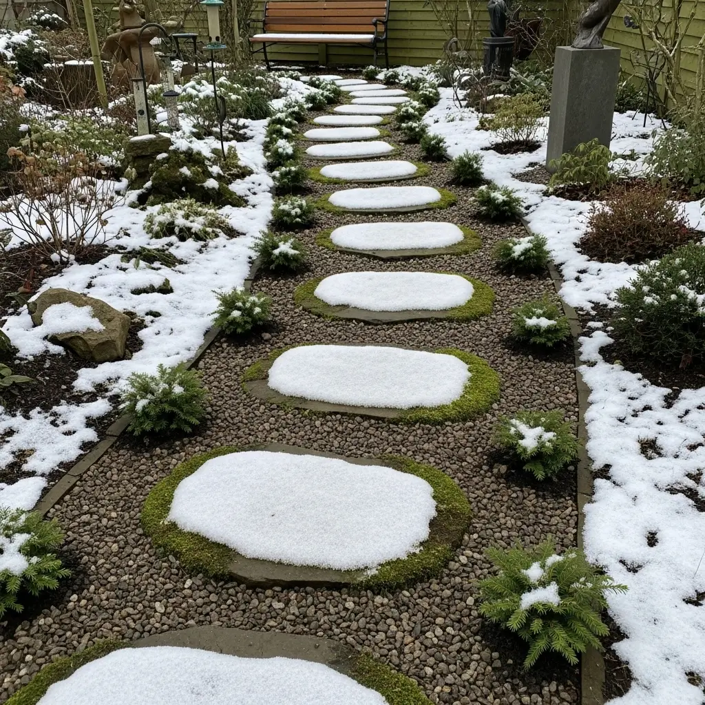 Flat stones placed in gravel or soil can create a natural, inviting pathway. In winter, even a light dusting of snow makes the stones stand out, giving your garden a magical touch.
