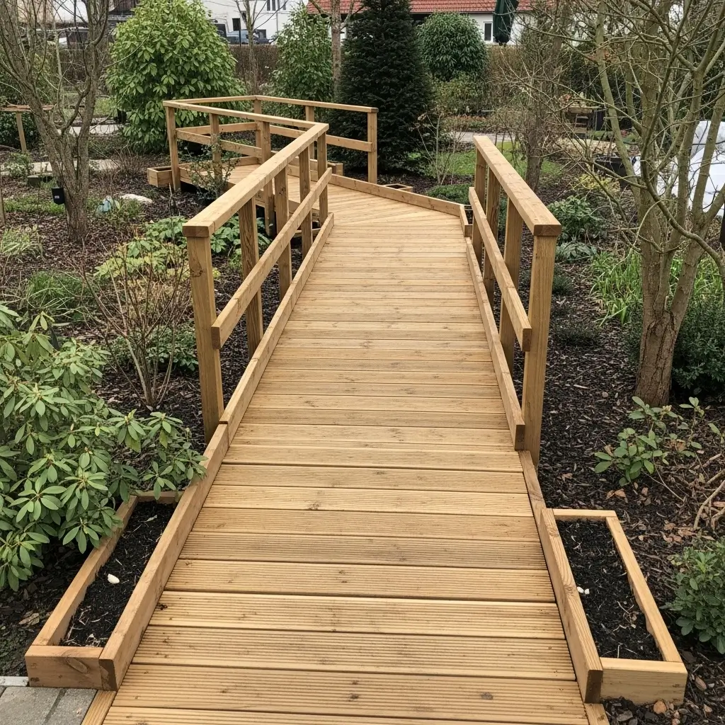 Adding railings or small planters along the edges creates extra charm. Wooden boardwalks work well in small backyards or large landscapes, making a simple walkway feel cozy and inviting.