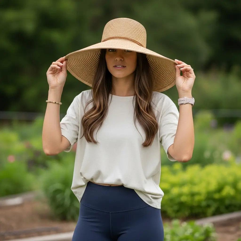 I love pairing a floppy hat with a simple top and leggings. It instantly feels like a garden-ready look. Hats also make gardening more comfortable, letting you stay outside longer without worrying about sunburn or heat.