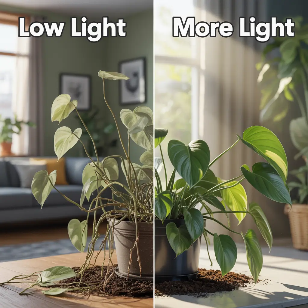 Light is food for plants. Without it, they get weak and start dropping leaves. If your plant looks pale, thin, or stretched toward a window, it likely needs more light.