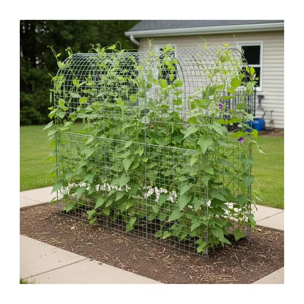 A wire mesh tunnel is simple, flexible, and budget-friendly. It works well for plants like peas, cucumbers, and morning glories because the mesh gives them many places to climb.